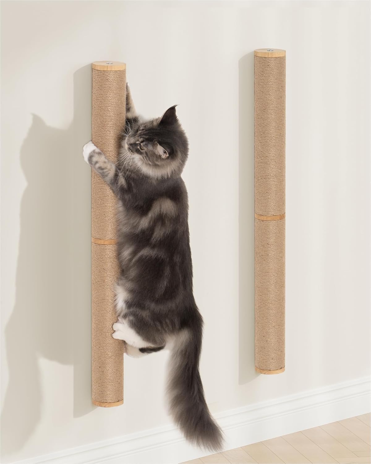 - Stretch, Scratch & Rub Cheeks: This 34” tall, 3.35” diameter wall mounted cat scratching post is perfect for most (small, medium and large) cats like maine coon to fully stretching, rubbing cheeks, climbing and scratching